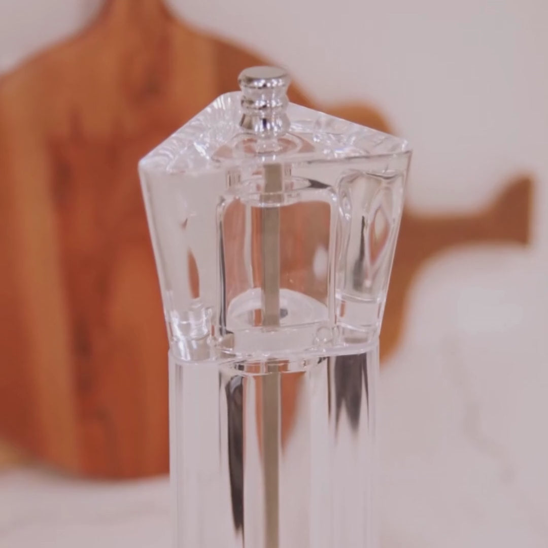 Huang Acrylic’s pepper mill and grinder is not like many ordinary grinders made of plastics and glasses. The grinder breaks down pepper in layers, as opposed to crushing, releasing maximum flavor. The triangular design is easy to use looks great in any cooking area. The acrylic material won’t absorb odors so it can be used with many different seasonings. Great for the cooking connoisseur in your home, purchase as a set. Huang Acrylic is an American company that is focused on quality, design, and style for the discerning customer since 1978.